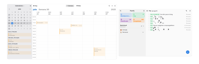 Actualmente tengo el calendario en Fastmail y las tareas en Nextcloud. Podría tenerlo todo en Nextcloud pero ha cuadrado así.